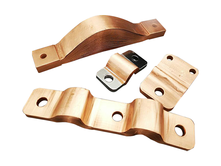 銅箔軟連接原料選用T2紫銅帶含銅量99.97%以上,紫銅具有優良的導熱性、延展性和耐蝕性。紫銅帶按狀態分可分為軟態與硬態的,滿足生產安裝不同需求。純銅箔軟連接采用0.05~0.3mm厚銅箔。銅箔軟連接采用高分子擴散焊工藝,將接觸面的多層銅箔融解在一起,改變其分子結構,凝固成銅塊后再進行后續加工。